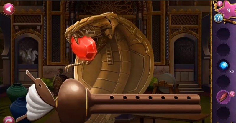 - 右側にあるドラムをタップして、赤い宝石を持ったヘビを見つけます。次の順番で音楽を再生して、赤い宝石 – Ni Pa Ma Ga Ni – 46714 を入手してください。