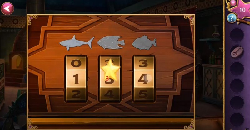 - 錬金術室に行き、ライオンの頭の下にある胸をタップします。コード (134) を入力してください 月の形をした黄色と赤のフラスコの赤い宝石のロックを解除します。