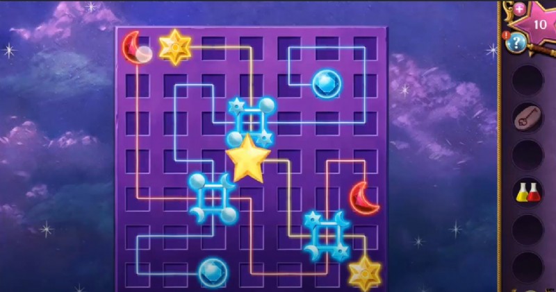 - ゲームをプレイするときの目標は、同一のシンボル間に線を引くことです。その間、線はすべての正方形を通過する必要があります。パズルが解けたら、そこから青いフラスコを集めて、他のフラスコと一緒にインベントリに追加してください。