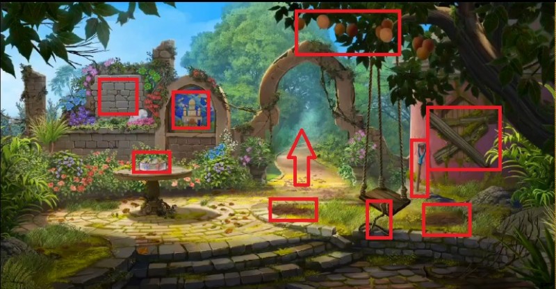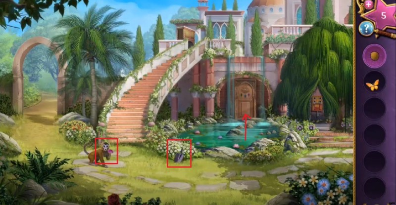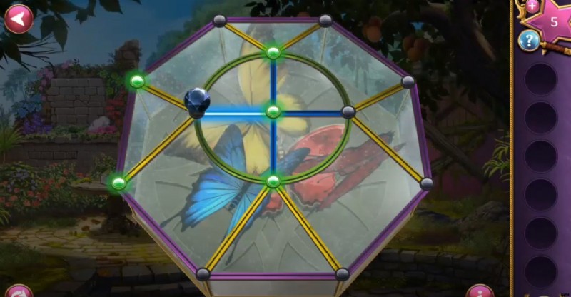 - 庭の中で、テーブルの上に蝶々の箱が置かれているのを見つけるかもしれません。ボックスをタップして、絵の中にある矢印に沿って宝石を動かしてください。