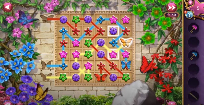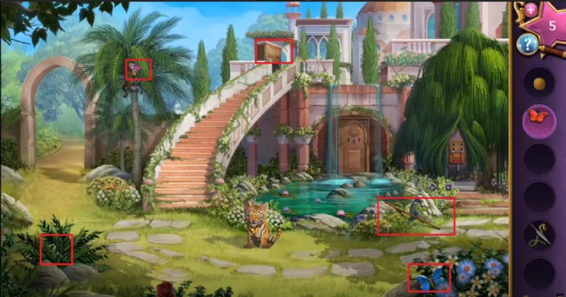 - 2 番目の庭に行き、右側の花の上にある青い蝶を集めます。