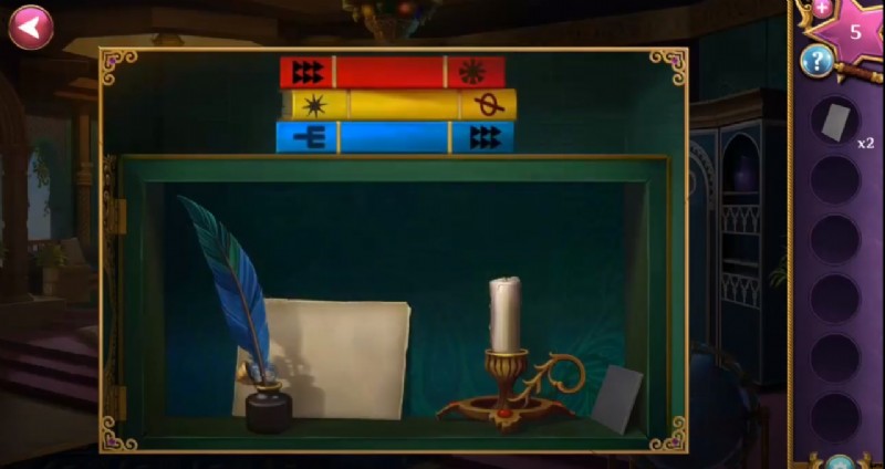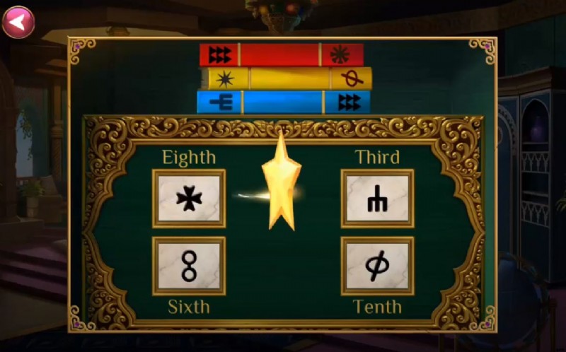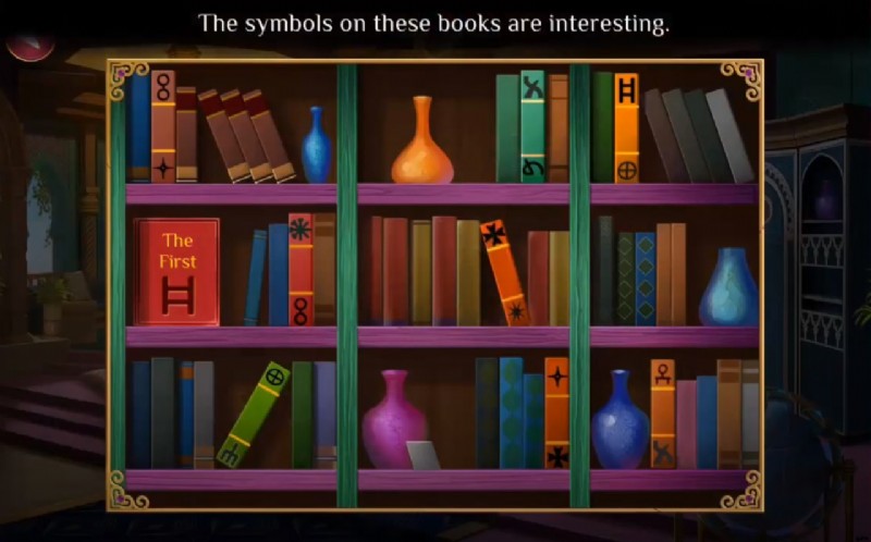 - 地球儀パズルに向かう前に、プリンセスの後ろにある絵をタップし、本棚に行って手がかりを見つけてください。標識を念頭に置いて、地球儀のパズルに向かいます。そこでは、矢印を使用して写真にある記号を一致させる必要があります。