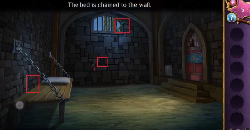 - 最初に、窓の下の壁をタップして岩を集め、それを使ってベッドを支えている鎖を壊します。ベッドを部屋の反対側にドラッグして、窓に突き刺さった葦を集めてください。