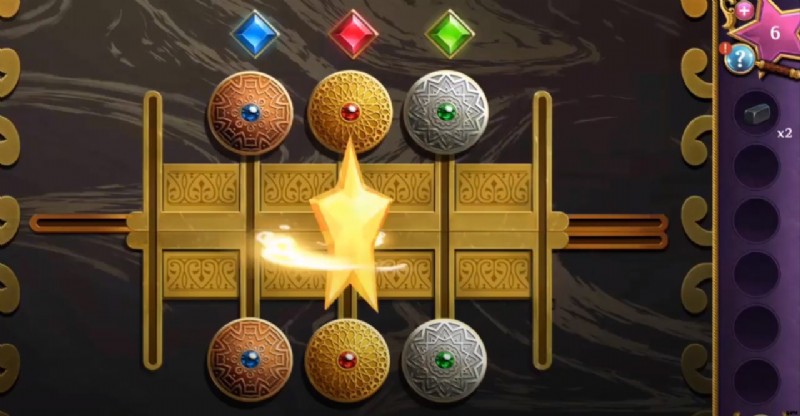 - パズルを完成させるには、下の画像に示すように、ディスクを並べて色を合わせてみてください。