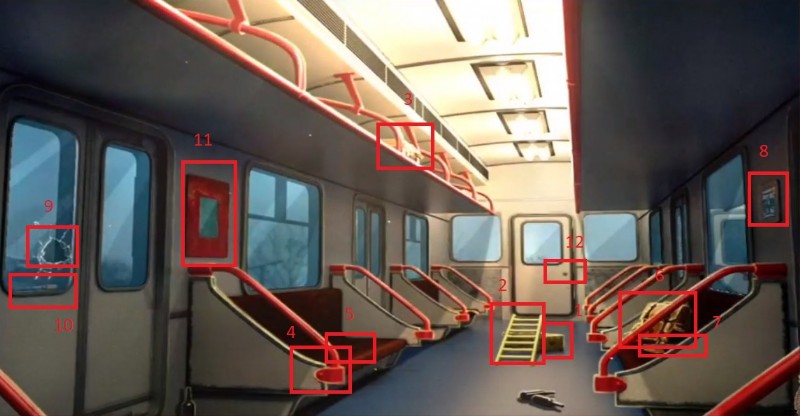 レベル 14 は、何か不審なことが起こっているように見えますが、床にいくつかのオブジェクトがある電車の中で行われます。探偵としてのスキルを解き放ち、出口を見つける旅に出ましょう。