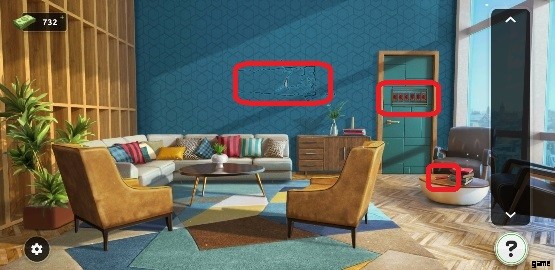 - デスクからリモコンを取り出し、壁に掛かっている絵をタップして電池を見つけてください。