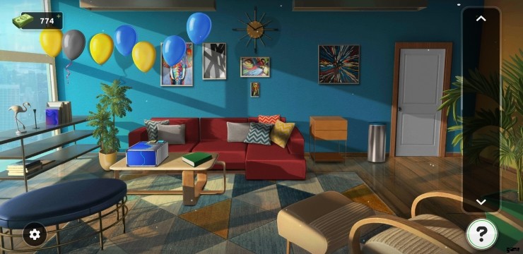 レベル 13 では、たくさんの風船やその他の装飾が利用できる部屋に移動します。前のレベルに並び、隠されたアイテムを見つけ、それらを使って鍵を見つけて部屋から脱出します。