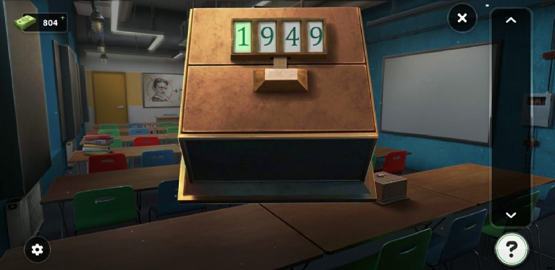 - 机の上のボックスをタップして、2 つ目のバッテリーを見つけてリモコンに追加します。壁に固定されたテレビをオンにして手がかりを見つけ、それを使用して次のコードを取得します (1949) ).