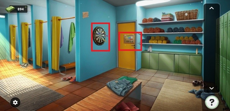 今回は、ゲームは洗面所に連れて行ってドアのロックを解除し、脱出して新しい部屋に到達します。手がかりと解決策はすべてダーツに隠されています。