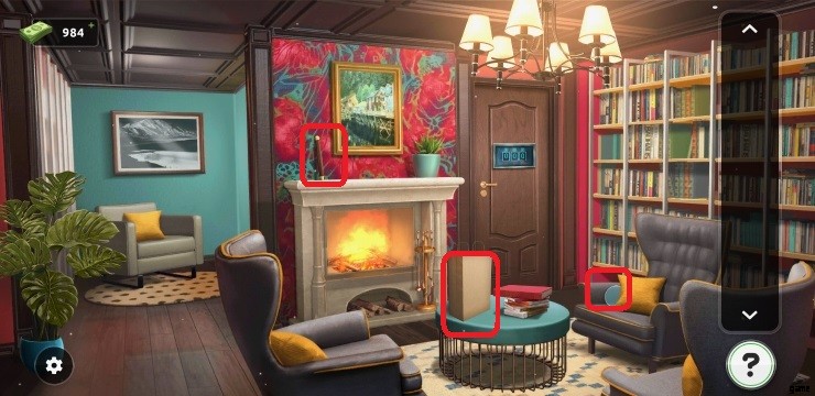 20 番目のレベルは、暖炉の前に立っている部屋で行われます。探偵としてのスキルを発揮して、最初に虫眼鏡を見つけてください。