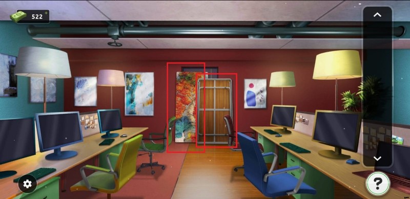 2 番目のパズルも、折りたたみテーブルと絵画を使用してドアがブロックされているオフィスに設定されています。物を取り除いて道を作り、3 番目の部屋に逃げてみてください。