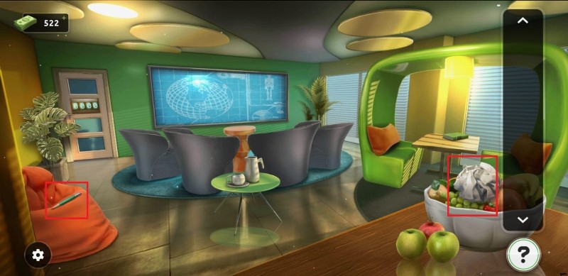 - コンピューター テーブルの近くにある赤い椅子をタップしてハンマーを見つけ、インベントリに追加します。