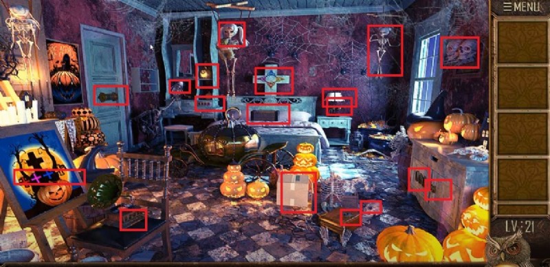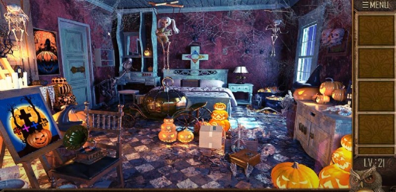 レベル20から脱出後 、ハロウィーン関連のものがたくさんある新しい部屋にたどり着きました。あなたの目標は前のレベルと同じです:隠されたオブジェクトを見つけ、ミニゲームをプレイし、ドアのロックを解除します。 Walkthroughs.net.レベル 21 の解決策と答えを見つけるには、100 ルーム 10 のチュートリアルを脱出できますかをお読みください。 .