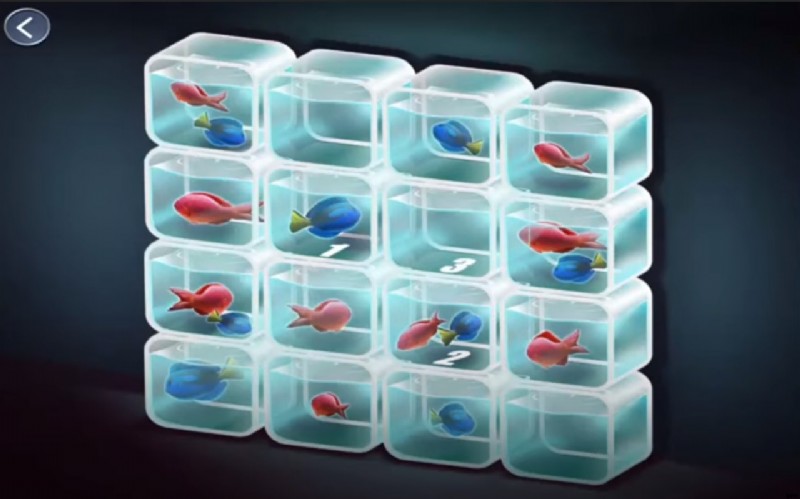 - 次に、ゲームはミニゲームを紹介します。目的は、紫のビームを紫のターゲットに向け、緑のビームを緑のマークに向けることです。私が言ったように、指示に従った後、最初の位置に戻り、魚の瓶に閉じ込められた男をタップしてください.
