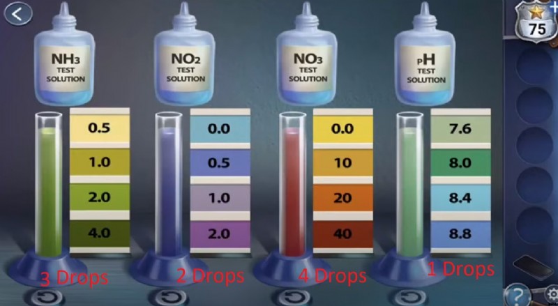 - さて、すべての魚の平衡のカバーを取り外し、磁石を使用して最初の瓶から鍵を集めます。キーを選択してテーブルのキャビネットを開き、浄水ドロップ ボトルを入手します .