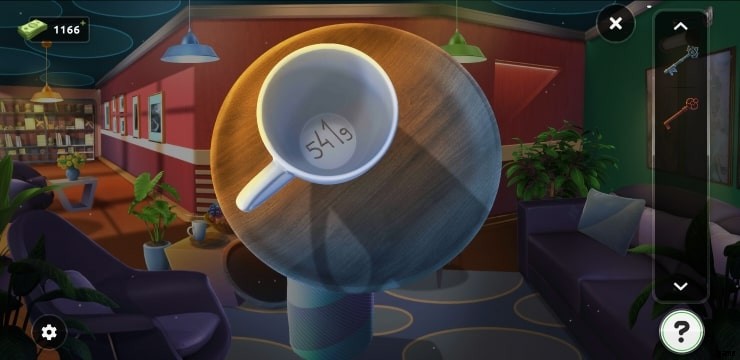 - 汚れたカップの近くに鍵があるかもしれないテーブルに向かいます。手がかりを得るために布を選択し、カップをきれいにします (5419 ).