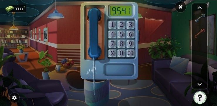 - 壁に固定された電話をタップして、コード (9541) を入力します ) 3 番目のキーを取得します。