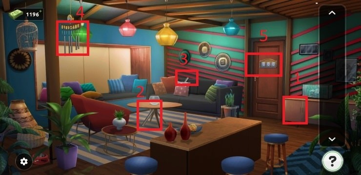 - 前のレベルと同様に、小さな棒を発見し、それらを使って音符を取得する必要があります。最初のものは、最初のソファのクッションの後ろに隠されています。