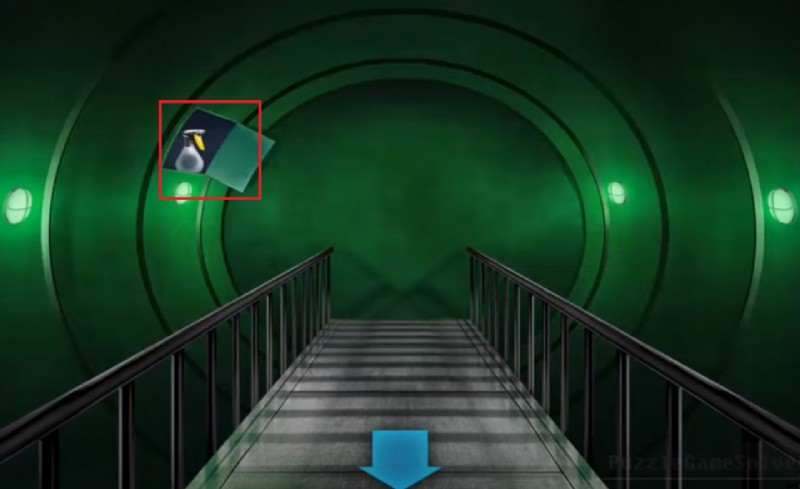 - 3 回戻って紫色の領域に到達し、次に進み、右に曲がって緑色のトンネルに到達します。インベントリから金属ヤスリを選択し、それを使用して「空のスプレー ボトル」のパネルを開きます .」