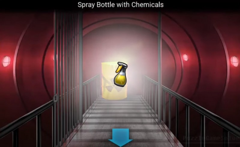 - 戻る矢印を 2 回押すと紫色のエリアに到達し、右手をタップして赤いトンネルに到達し、前方矢印を 2 回押すと再び赤いトンネルに到達します。キーを選択して使用し、ドアのロックを解除し、空のスプレー ボトルに 毒性 を満たします。 .