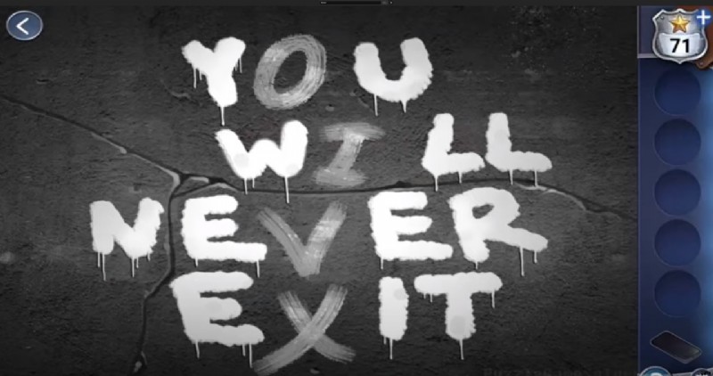 - インベントリからチョークの粉を選択し、アルファベットを拡大しながら追加して、ハイライトされた文字 (OIVX) でそこに書かれている内容を読み取ります (You will never exit)。 ).