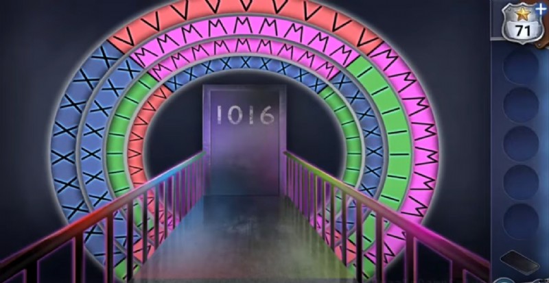 - 先に進む前に、通路の上に、右、上、左、右、上、左などの方向を示す通知標識が描かれています。標識に従って別のカラー ホイール ドアに到達すると、数字 (1016) が見つかります ).