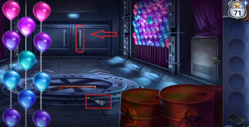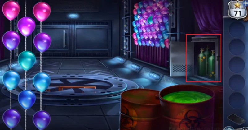 - ドラムの上には、キーを使用して使用できる南京錠があります。小さなキャビネットを調べて、手がかりとなるガスボンベを見つけてください。