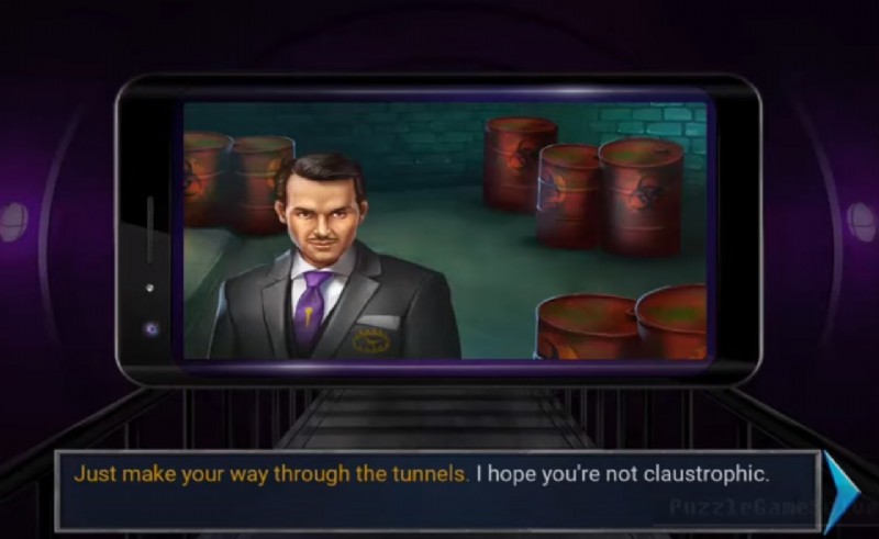 チェスのようなボードパズルを解いた後、ケイトは不気味な家であるファンハウスに飛び込むことに成功しました。今、ケイトは、どんな犠牲を払っても友達を見つけるために、トンネル、滑り台、階段の迷路をナビゲートする必要があります.すべての解決策と回答を確認するには、Trapmaker 3 の第 3 章のチュートリアルを読み続けてください .ファン ハウスに入ったら、トラップ メーカーの電話に応答してください。トラップ メーカーは、ファン ハウスに潜む危険なサメについて警告します。彼はまた、基地に到達する唯一の方法はトンネルを通ることであることを明らかにしました.