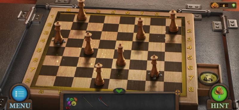 - 箱が開くと、チェスのゲームに変わります。目的は、赤い駒をすべて茶色に変えて、小さな引き出しからチップを手に入れることです。