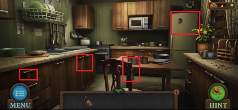 あなたは今、たくさんのものがあるキッチンにいます。それらとやり取りすることで、抜け道を見つけることができます.キッチンを調べて隠しオブジェクトを探し、それらを利用してパズルを解いてください。