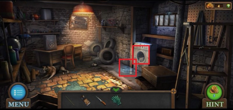 - 犬が眠りについたら、手間をかけずに隠しオブジェクトを集め始めます。まず、やかんを集めて、右側にあるブリーフケースに向かい、ドライバーを隠します。