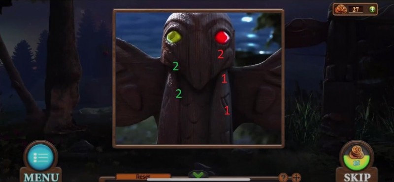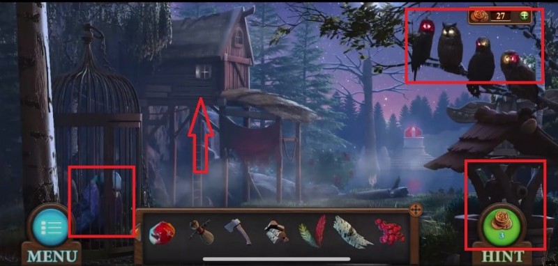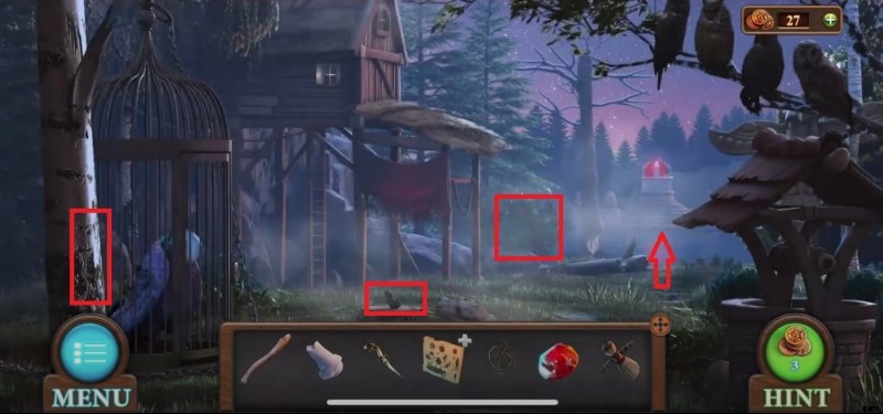 - 木の上に座っているフクロウをタップして、目から出てくる光のシーケンスを覚えておいてください (赤、赤、緑、緑、緑、緑) 、緑 、レッド ).