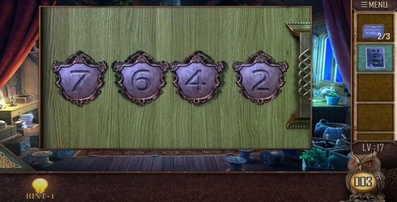 - 右側のテーブルの横にあるキャビネットをタップしてコード (7642) を入力すると、ロープやパズルの 3 番目のピースなど、次のものを入手できます。
