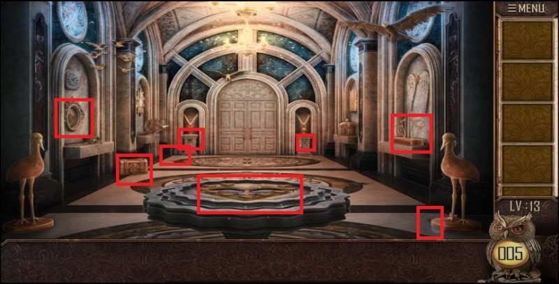 いくつもの部屋を脱出した後、あなたはどこかのホテルのロビーにたどり着きました。エリアを美しくするためにたくさんのフィギュアが配置されており、その間に隠されたオブジェクトを見つけて手がかりを見つけ、ミニゲームを解決して脱出することが目的です。どの難易度でも無料のヒントを使用できます。ヒントがなくなったら、動画広告を見て無料になります。そうしないと、お金がかかります。 100 ルーム 13 レベル 13 チュートリアルを脱出 すべての解決策と答えを得るために。