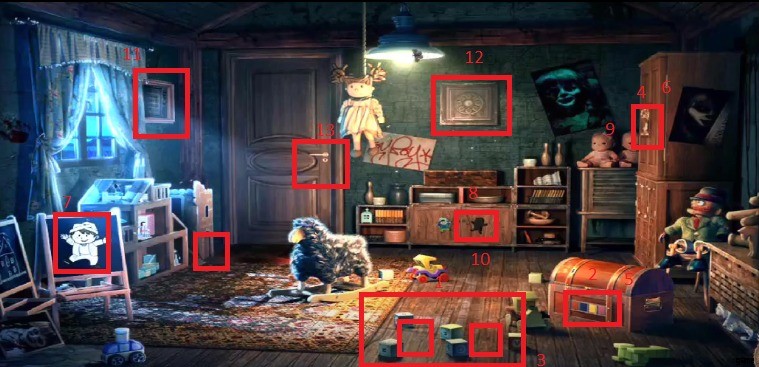 地下鉄の駅を出た後、おもちゃでいっぱいの子供の部屋に閉じ込められました。他の隠しオブジェクトと同様に、隠しオブジェクトを見つけて、それらを利用してロックされたドアを開くことができます。誰かが人形を天井から吊るしたため、部屋は少し不気味に見えますが、その男は神聖な計画を持っていないようです.誰かがあなたが部屋を出ることを望んでいません。そのため、100 ルーム 13 レベル 9 ウォークスルーから脱出できますかをお手伝いします。 .