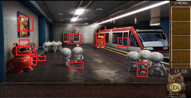 いくつかのロボットがあなたを待っている地下鉄駅へようこそ。そこには 10 体以上のロボットがいて、それぞれと対話することはできません。したがって、トリッキーなパズルを解くには、スマートに作業し、オブジェクトを処理する必要があります。画面をランダムにタップすることは許可されておらず、「100 ルーム 13 を脱出できますか」レベル 8 から脱出する探偵スキルがなければ、レベル 8 は不可能です。