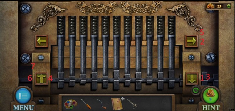 - 鍵を使ってドアのロックを解除しますが、まず、機知に富んだ別のロックを解除し、それを通り抜けて、隠されたオブジェクトの新しいシーンを発見してください。