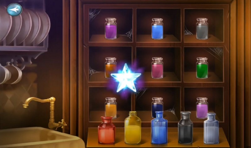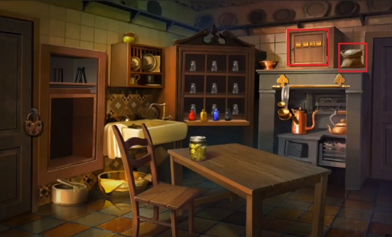 - キッチンに行き、ストーブの上に保管されている保管庫を探します。コード (4727) を入力してください アルコールのボトルを入手します。人間モードを選択し、空のボトルと満たされたボトルがたくさんある戸棚に向かいます。