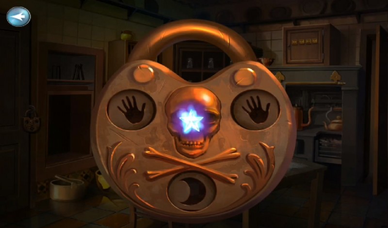 - 左側のドアに向かい、3 つの画像 (両手) を設定します。 そして1つの月 ) をロッカーに押してロックを解除します。