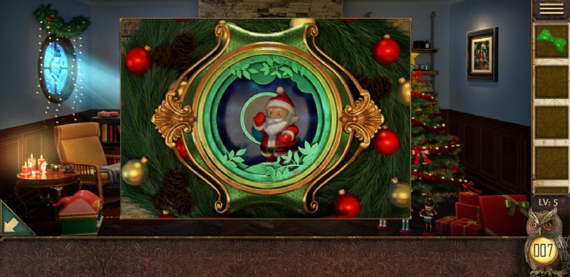 - 暖炉の上にある花をタップします サンタクロースを叩いて 弓を発見する。