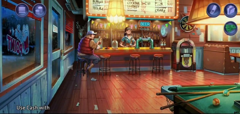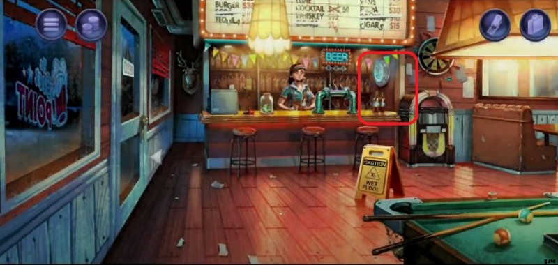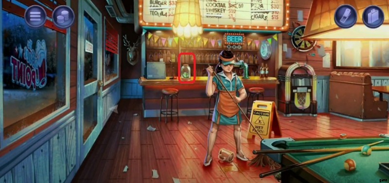 - ビール グラスを選択し、床に置きます。バーの店員が床を掃除しに来たら、ビンからお金を盗み、マシンで音楽を再生します。