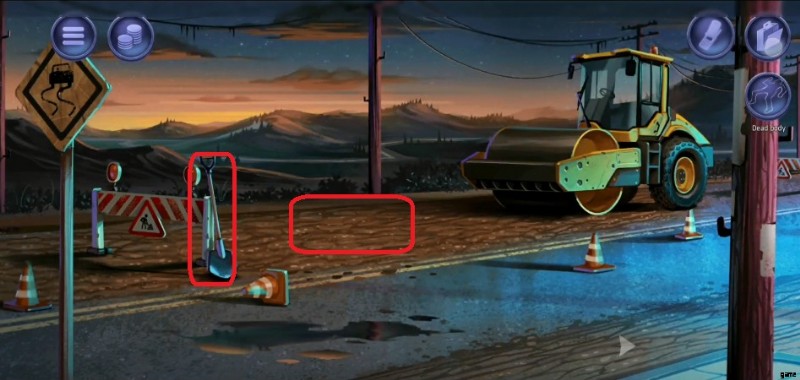 - 建設現場に戻る シャベルを手に取ります .シャベルを使って土地を掘り、死体をその中に隠し、砂で覆います。