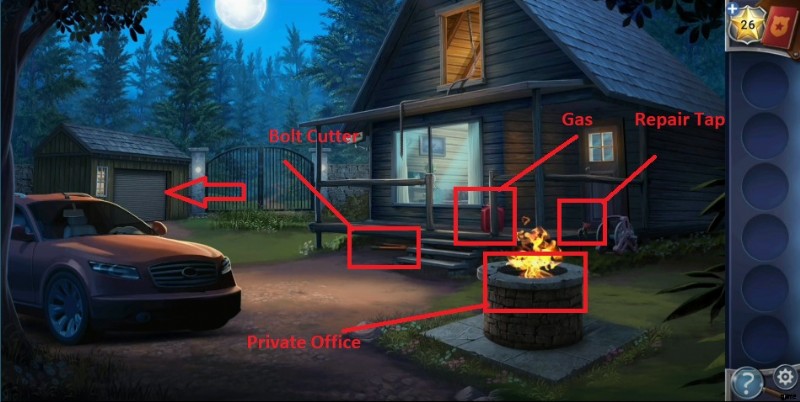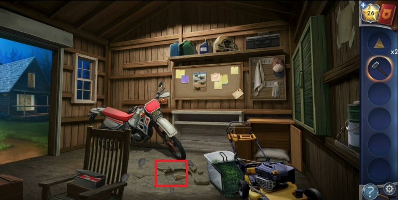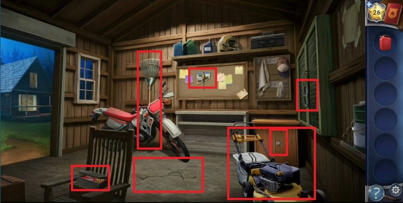 - ガレージをタップしてシャッターを開き、そこを通り抜けて隠されたオブジェクトを発見します。椅子をクリックしてボックスを見つけ、バルブ ホイールを入手します。 .