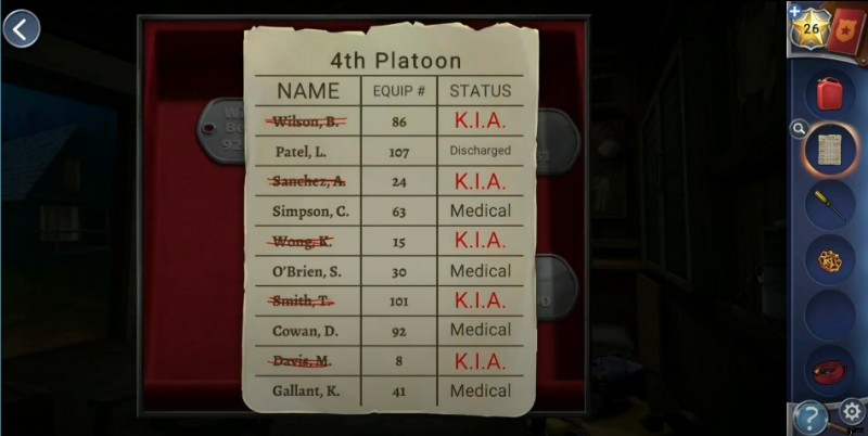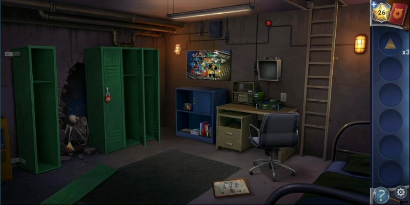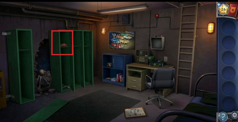 - Head to the locker on the right side of the skeleton and tap the arrows following the order given above. Down, Left, Up, Right, and Left unlock the cupboard and grab the letter pieces and power cord .