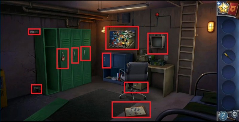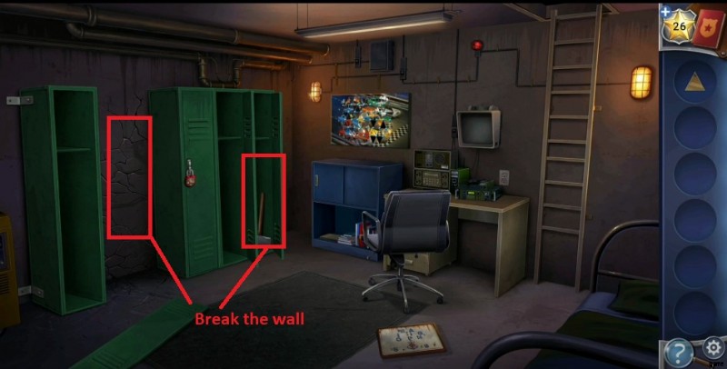 - Use the screwdriver to open up both joints of the first locker and discover the wall with cracks.