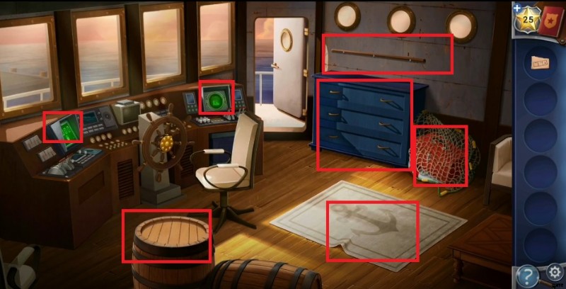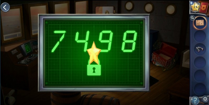 - 船に戻り、コンピューターに向かい、パスコード (7498) を入力します 引き出しのロックを解除してガレージリモコンを集める その中から。