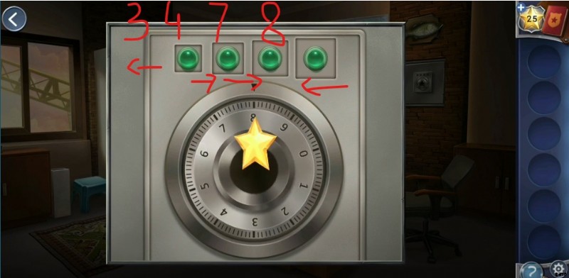 - 2 番目のアイコンをタップして、壁に隠された秘密の金庫を見つけてください。ここでの最終的な目標は、壁に掛かっている絵に向かい、同じオブジェクトを数えた場合にのみ可能なコードを見つけて、ロッカーをクラックすることです.