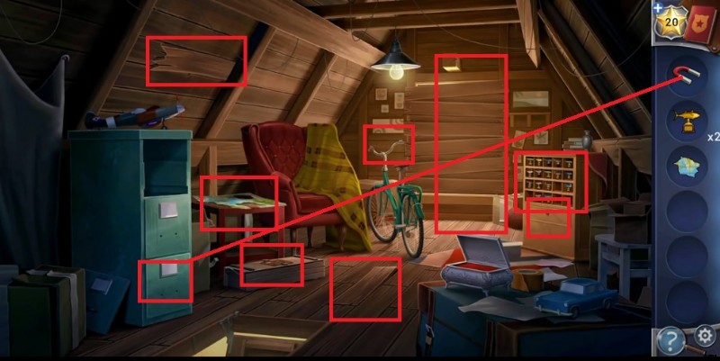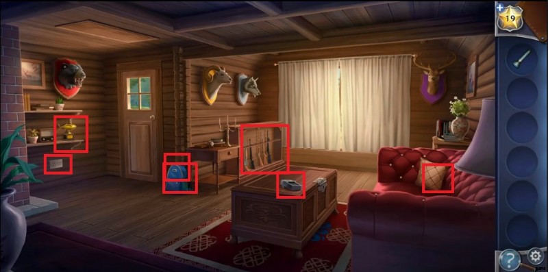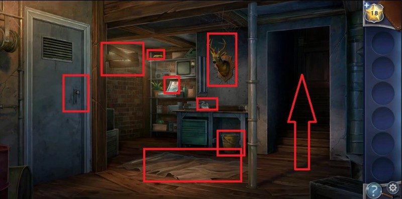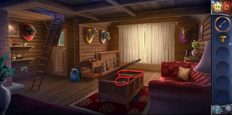 - 特定の順序で動物の頭をタップすると、天井のはしごが出てきて、新しいエリアを探索して、手がかりやその他の隠されたオブジェクトを発見できます。