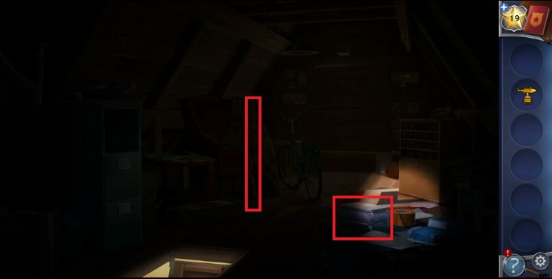 - 電球を持ってパズルを解くと、引き出しが開きます。電球をつかみ、天井のはしごを登って 2 番目の部屋に到達します。ライトをドラッグしてホルダーを見つけ、電球を固定して部屋を明るくします。