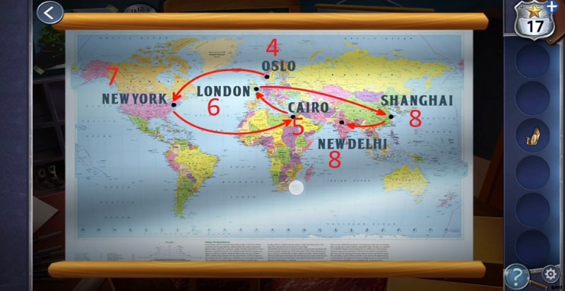 - 部屋に入り、マップをタップして都市名と文字を見つけ、パスコード (475688) を見つけます ).
